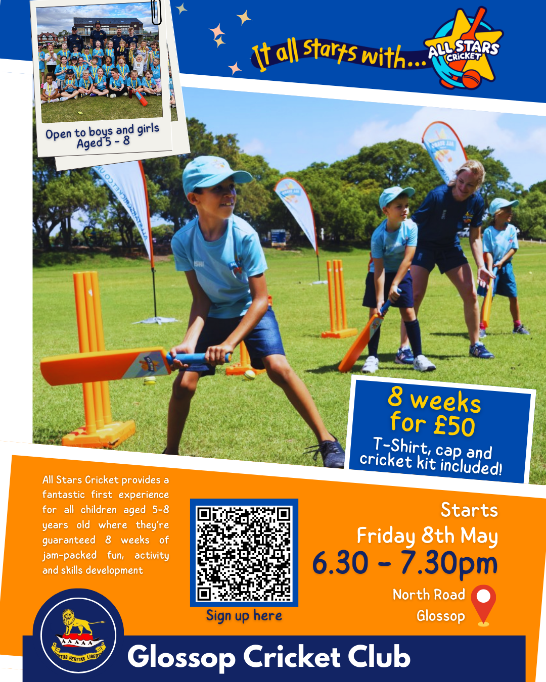We're excited to welcome All Stars Cricket and Girls-Only Dynamos Cricket to Glossop Cricket Club, starting Friday 8th May at North Road.